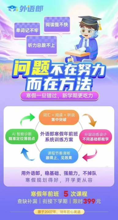 三年级到初三孩子,寒假英语加油起飞!学校学习模式比较枯燥,在这里,AI通...